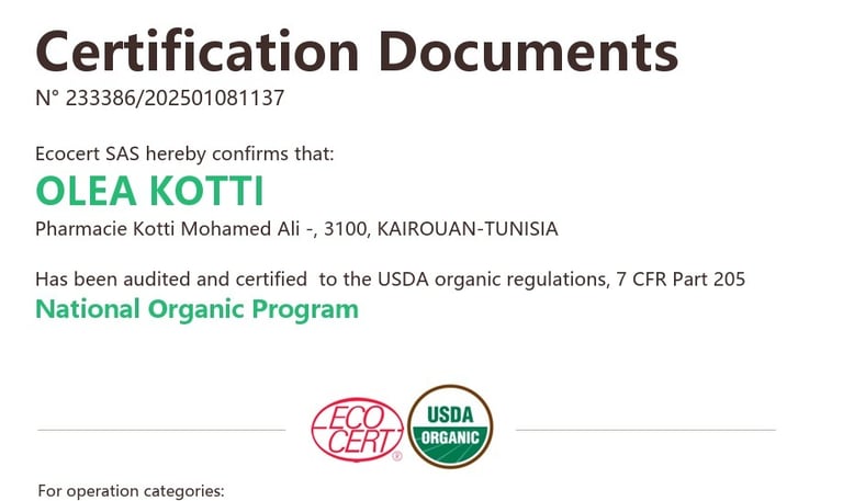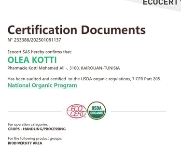 Certifiée biologique par Ecocert et USDA aussi conforme à la norme ISO 22000, notre huile garantit une sécurité alimentaire rigoureuse et un respect de l'environnement.